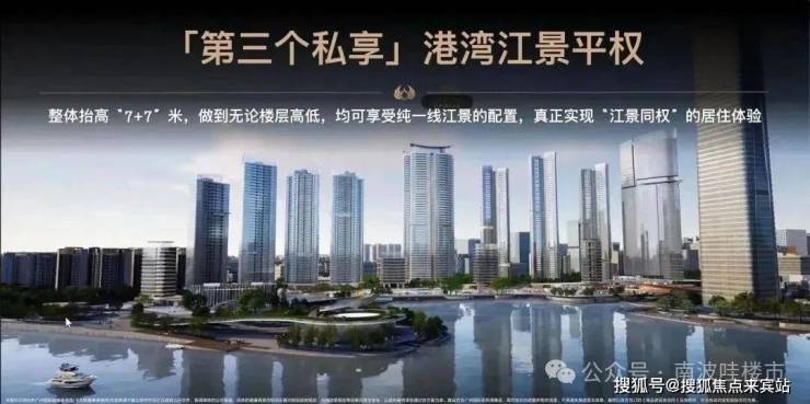 【第三个私享】坐拥约700米看江面,纯一线江景湾居为尽可能利用38米宽港湾地,住宅整体抬高14米,与港湾融合,享受三江汇流景观,纯一线江景。