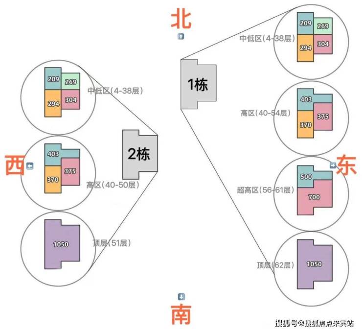 超高区:492㎡北半层,56—61层,共6套