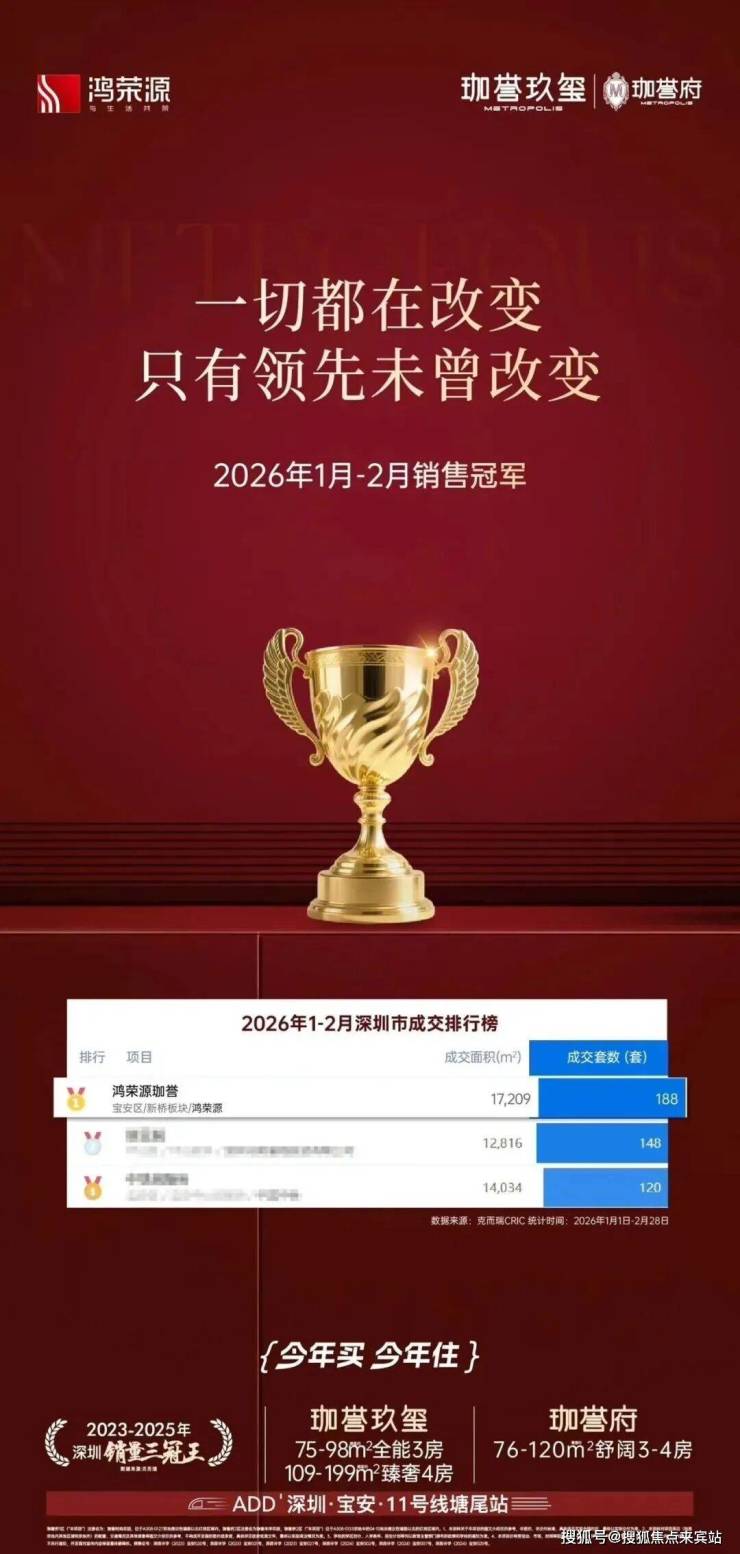从2023年7月首开直到如今2026年3年时间项目1-2区基本清盘,已经是现房状态了,去年已经交楼了,还有2024年开盘的玖玺片区目前也是成交不断,让珈誉府在今年上半年依旧排全深圳第二,宝安第一销量!两年多时间以来项目销售了起码5000+套房