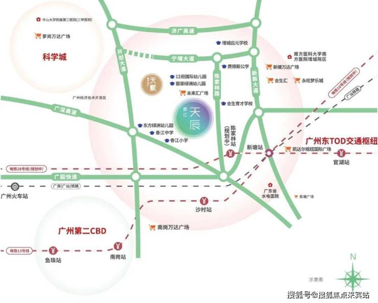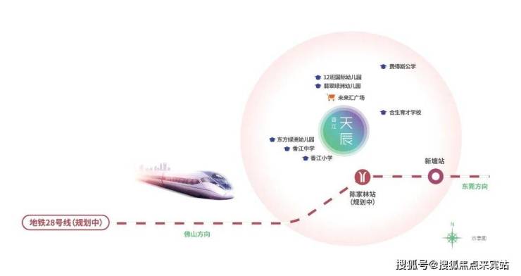 站在香江天辰的观景阳台,目光所及是清晰的未来图景:与黄埔区仅隔一条宁埔大道,15分钟车程直达科学城产业集群,广深高速、广园快速编织出四通八达的交通网络。更令人心动的是规划中的地铁28号线陈家林站,这条串联佛山、广州、东莞的湾区大动脉,将使项目晋升为“三站金融城、五站琶洲”的黄金节点。当新塘TOD商务区与黄埔临港经济区形成合围之势,这个地处增城却紧握城市命脉的小区,正在书写“非核心区的核心价值”。