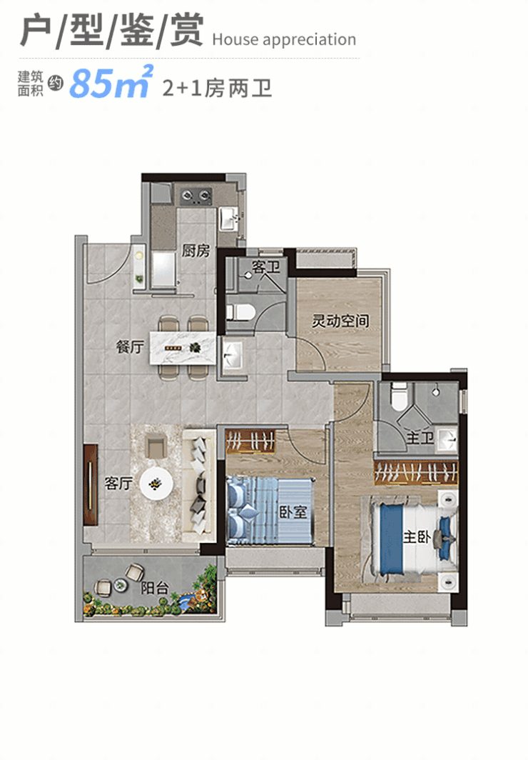 阳台是一个家庭与室外形成交互的连接点,功能早已超越晾晒衣物的单一属性,增加了休闲互动、花园造景、收纳储物等场景。这种变化反映出了现代家庭对宽敞阳台日益增长的需求。