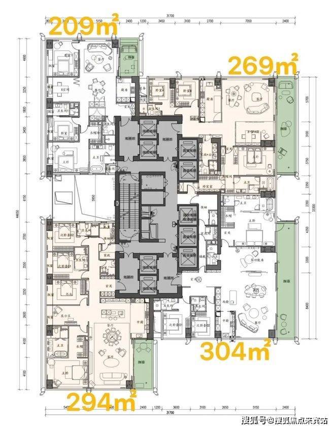 顶楼:约1050㎡整层大平层(仅3套)。