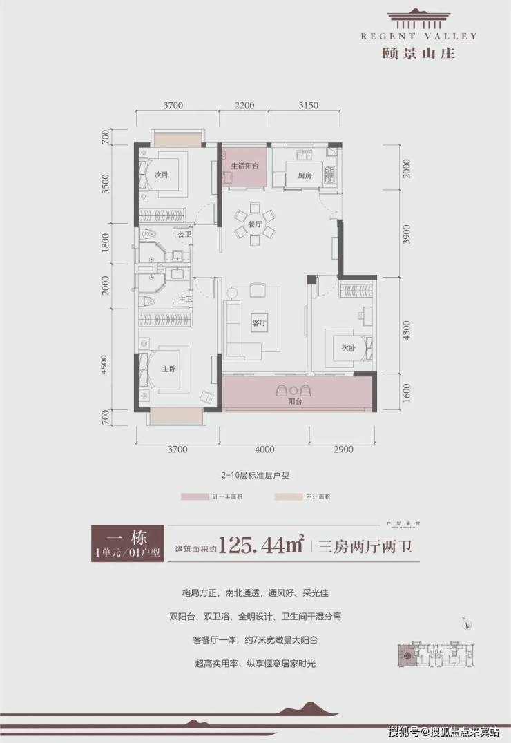 【小高层】——高赠送率、户户南北通透:小高层近95%实用率,公摊少、赠送多,高拓空间,性价比之王,户户南北通透,清风对流;4m客厅开间明朗,三面朝阳设计,延伸生活的幸福尺度;