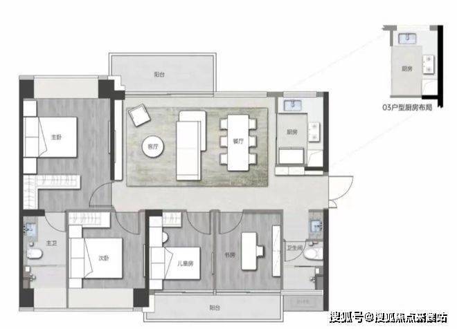 方正全明四房,美好生活一步到位,客餐厨一体化设计,品自在人生格局;