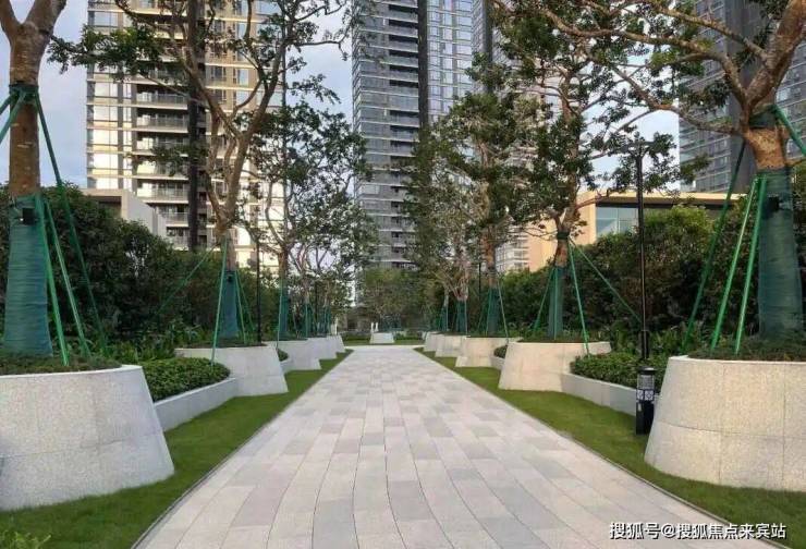 红果冬青树形成绿荫轴线,热带植物围合形成的翠绿廊道。极致细节,铸就可见的奢华。 园区林荫大道的弧形花池,采用高难度定制石材工艺,成品率低,每一块都是匠心甄选。无缝拼接技术确保视觉极致流畅,而内部 “六面全维防水”工艺,则从根源保障了绿化的持久生命力与景观的完美状态。我们以看不见的复杂工艺,兑现看得见的品质生活。