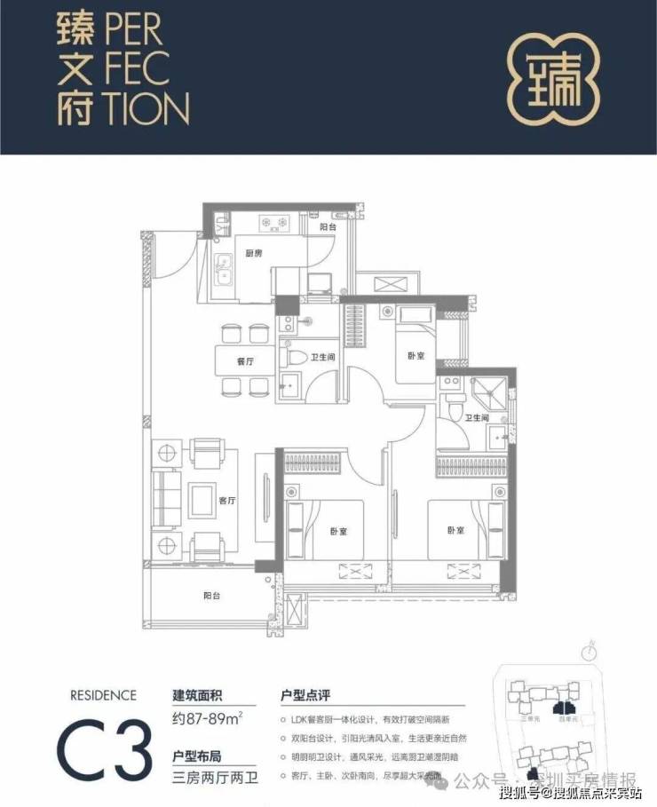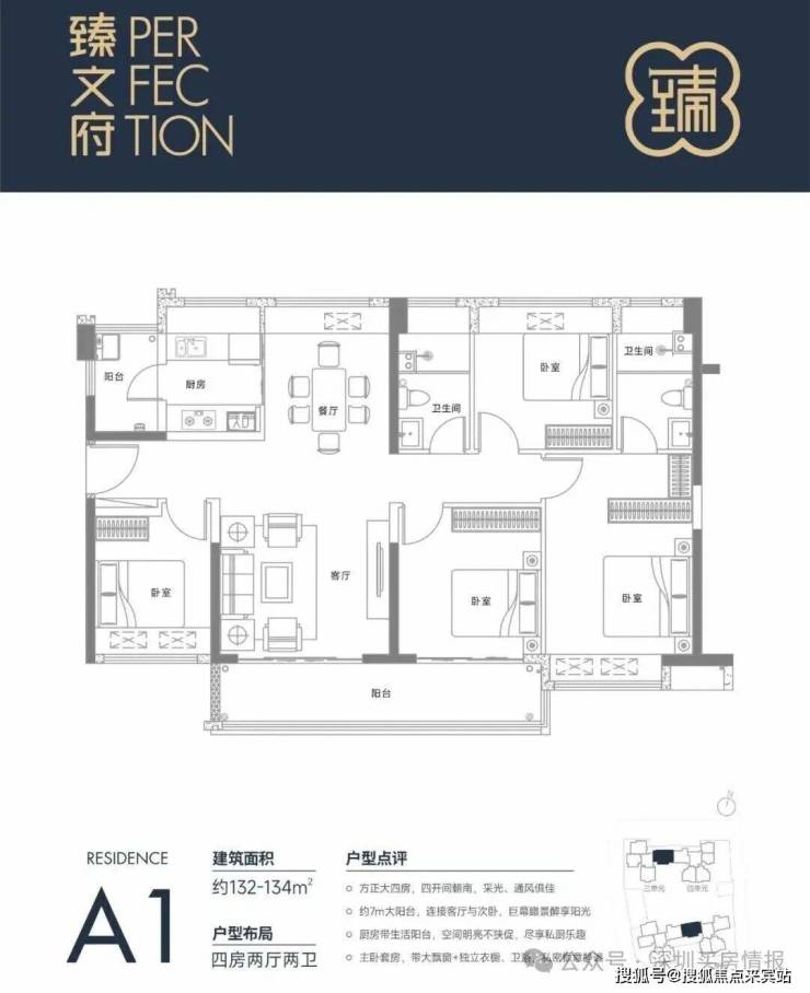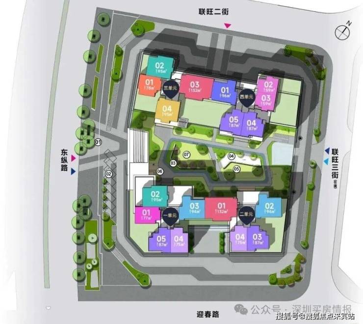 臻文府,由坪山本地房企六和集团打造,也是六和城二期,总占地面积约0.92万㎡,总建筑面积约6.85万㎡,计容建筑面积约5.32万㎡,容积率5.76,绿化率25%,共由4栋总高31层住宅组成,分别是1栋/1/2/3/4单元,另外配建1所9班制幼儿园。总规划520户,1栋1/4单元是2梯5户,1栋2/3单元是2梯4户,地下2层,停车位358个,停车位占比约1:0.69。