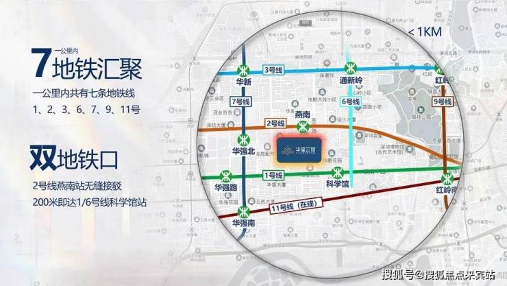 三地铁交汇地铁物业,0距离燕南地铁口(2号线燕南站),约400米到1号线/6号线科学馆站,片区800米内汇集1、2、3、6、7、9、11号七条地铁线,50多个地铁站口