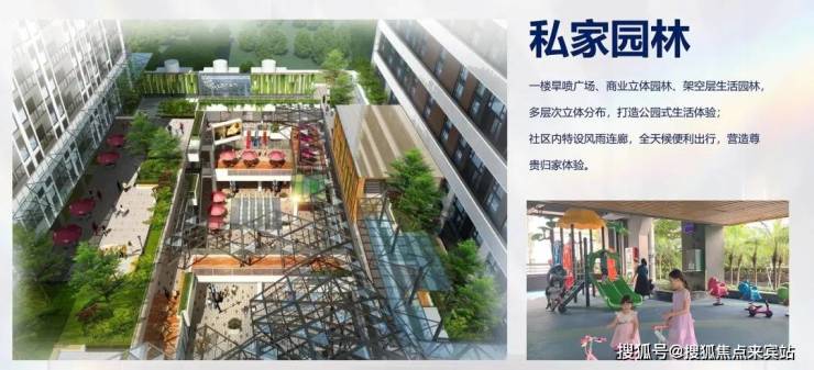 项目的4层为架空园林,项目园林设计结合了科技、自然、现代时尚的元素,为住户打造一个都市公园。规划有儿童活动区、露台活动区、架空层活动区、环形跑道等,将景观和时尚融为一体