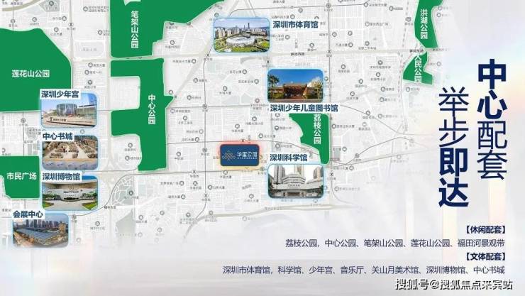 休闲配套:荔枝公园,中心公园、笔架山公园、莲花山公园、福田河景观带