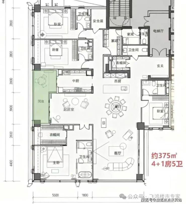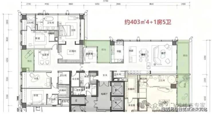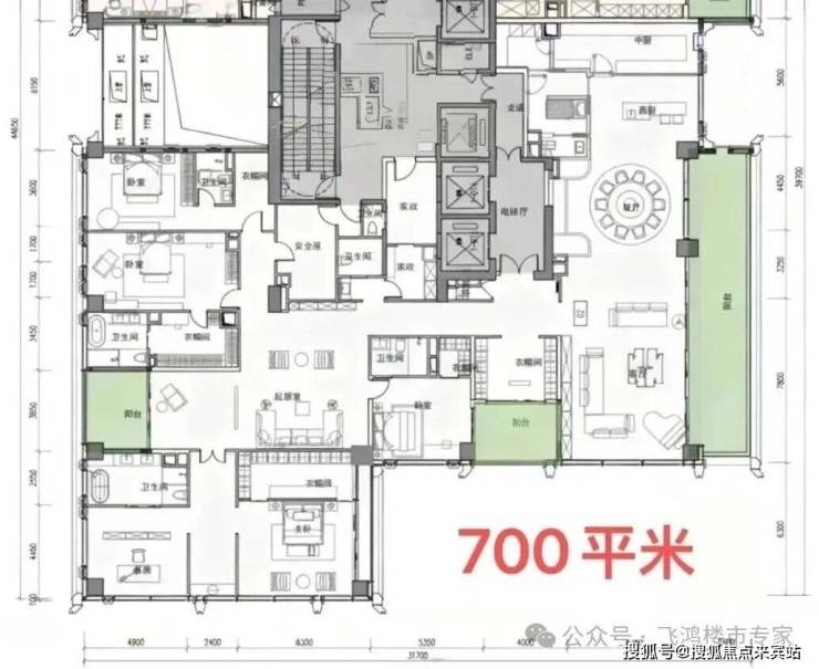 第三层是超高区的 “顶豪藏品层” ,位于200米以上,规划有建面约500平方米、700平方米乃至约1050平方米的整层大平层。这里的空间更像是私人定制的艺术品。例如约700平方米的户型,客厅进深约13.5米,开间约11米,连接的阳台开间达约15.5米,其空间已不是传统意义上的“阳台”,而是一个巨型的 “空中花园观景台”。
