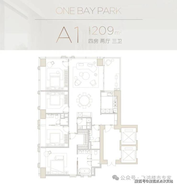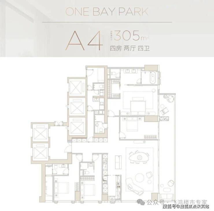 项目首推北地块,户型覆盖建面约209平方米至约1150平方米。全系产品都是四房起步,实现了纯粹的大平层居住圈层。