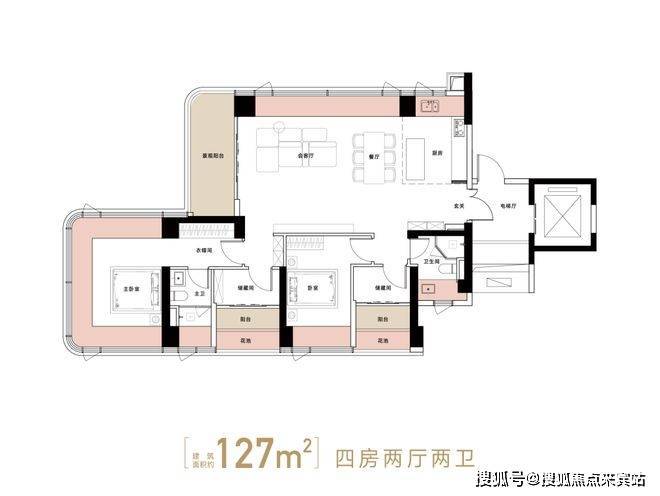 梯户配比:低区 4 梯 5 户、高区 4 梯 4 户;约 127㎡及以上户型专梯专户层高设计:约 3.15 米,拓展舒适空间尺度