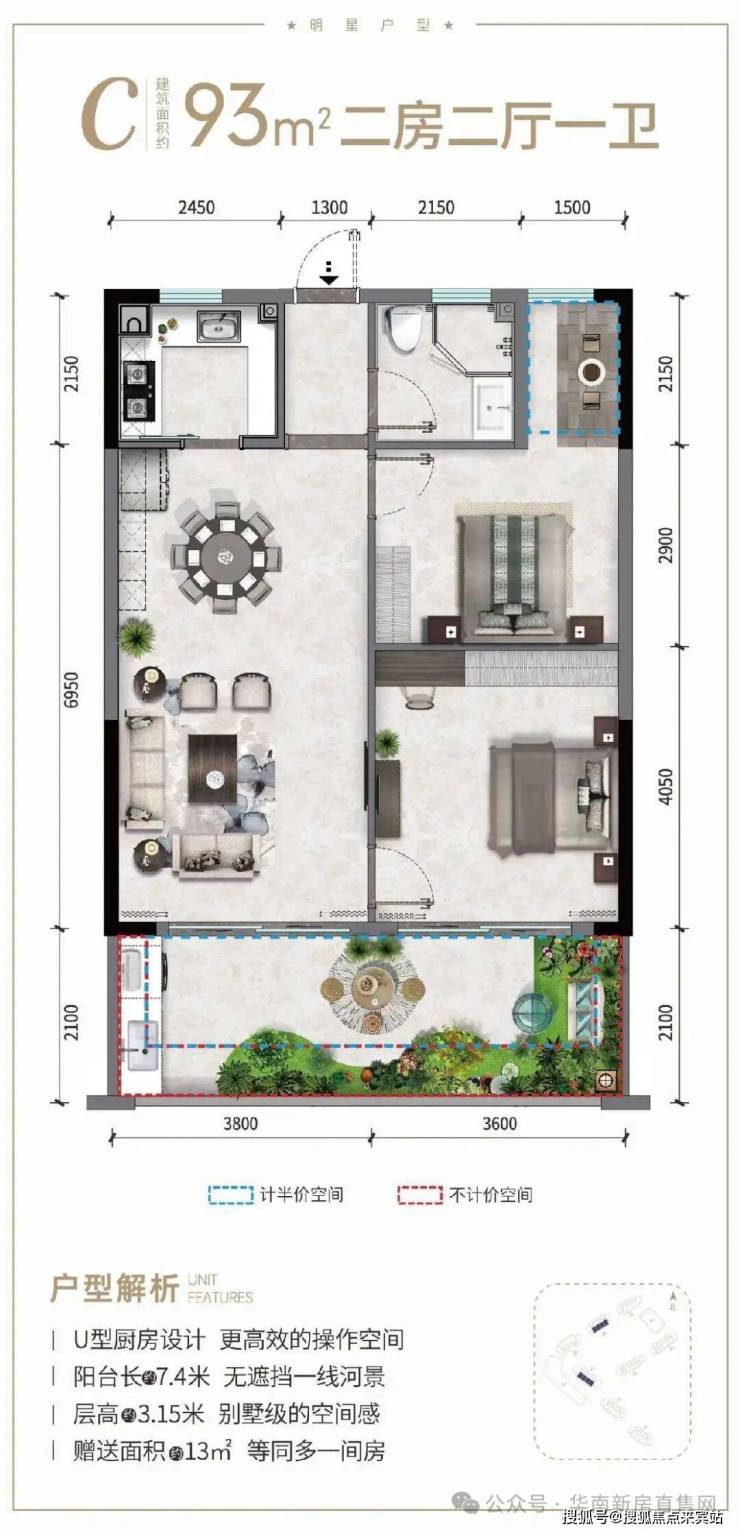 ②产权式酒店,户型南北通透,面积93-145㎡两房至四房。赠送超大面积,93㎡两房一卫、97㎡小三房两卫、115㎡三房两卫、141㎡四房三卫;阳台面宽高达12米,部分阳台可270°三面河景。