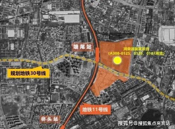 鸿荣源奥莱项目前身原为塘尾工业区城市更新项目,位于11号线塘尾站东侧。