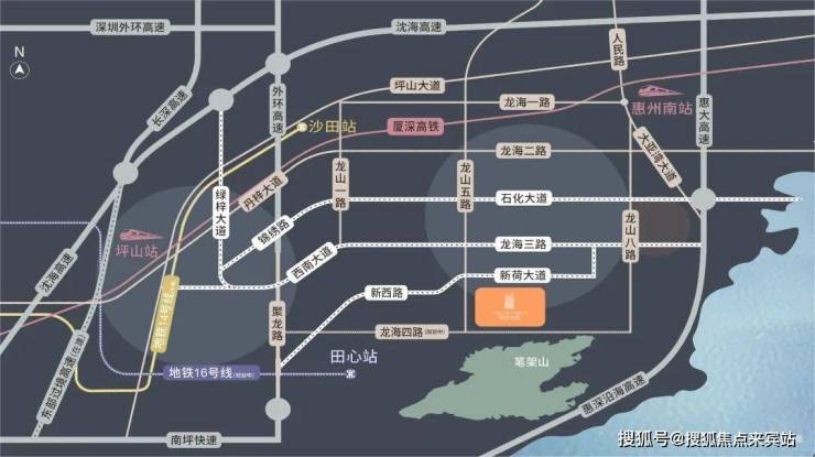 龙海四路:项目南侧主干道龙海四路(规划中),西起新兴一路,东至龙山三路。可快速直达深圳坪山。