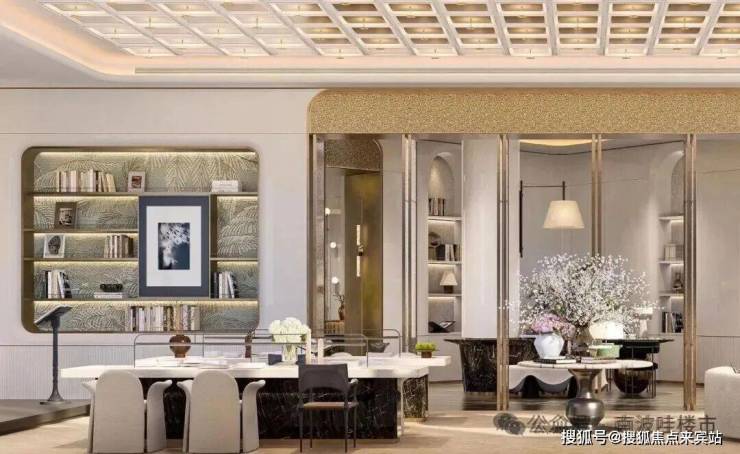 三重礼序归家:酒店式南北双大堂、单元大堂、酒店式车库大堂3重尊享归家动线,南大堂约12米震撼层高,北大堂约6米挑高,奢阔空间给予归家尊崇仪式感;
