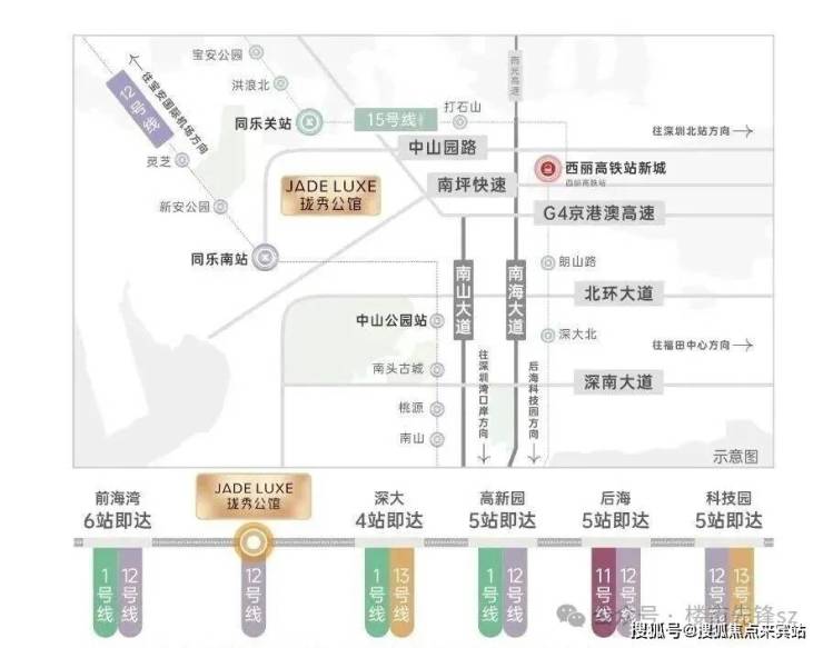 • 15号线同乐关站(在建中,预计2028年12月开通),串联宝中/前海/深圳湾/西丽,也被称为深圳“一环线”,本项目为环线上的重要一环;