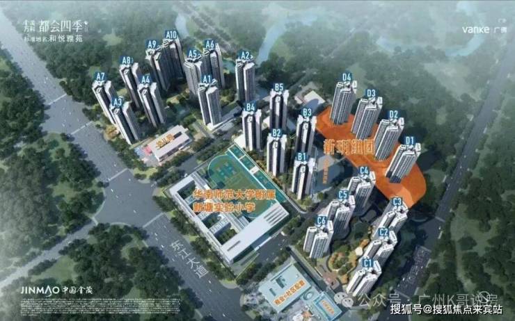 自身配套18个班的幼儿园以及引进华南师范大学附属小学(48个班),现在已经开学了,是广东省唯一一所受直属广东省教育厅和华南师范大学双重领导下的省一级学校,被评为“全国百强小学”,多次收到国家级、省部级的表彰及奖励,全校教师均来自于名牌大学,是广州市教学质量最好的小学之一。