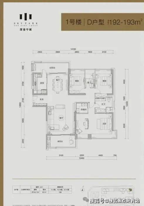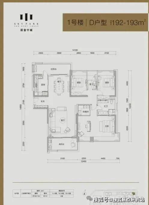 D户型:192-193㎡3房2卫(可改4房),套内面积151㎡,户型与B户型类似,同样享受香蜜公园景观。