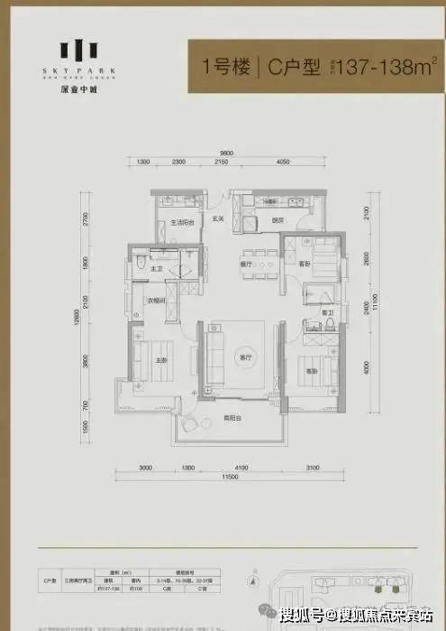 C户型:137-138㎡3房2卫,套内面积108㎡,双龙抱珠户型,主卧连接南向观景阳台,宽敞明亮。