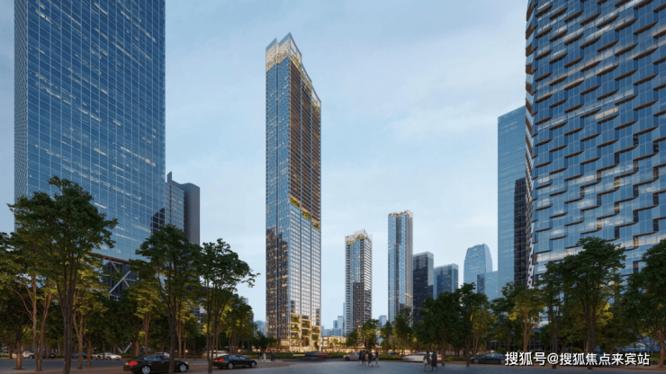 作为全球顶级建筑事务所,KPF以“流动的城市绿洲”为核心理念,将五栋超高层塔楼(4栋住宅+1栋公寓)设计为深圳湾的“点睛之笔”。建筑外立面采用流线型曲面玻璃幕墙,灵感源自海浪的起伏,既呼应滨海地域特色,又通过逐层退台形成空中花园,最大化引入自然光与湾景。公寓塔楼高250米,设城市观景台,成为后海总部基地的视觉制高点。