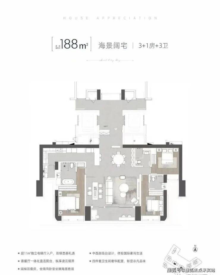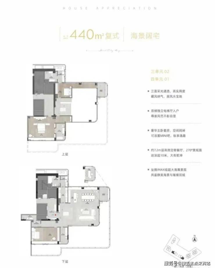 3-4单元为总高53层的商品住宅楼,4梯3户,总计约848户。