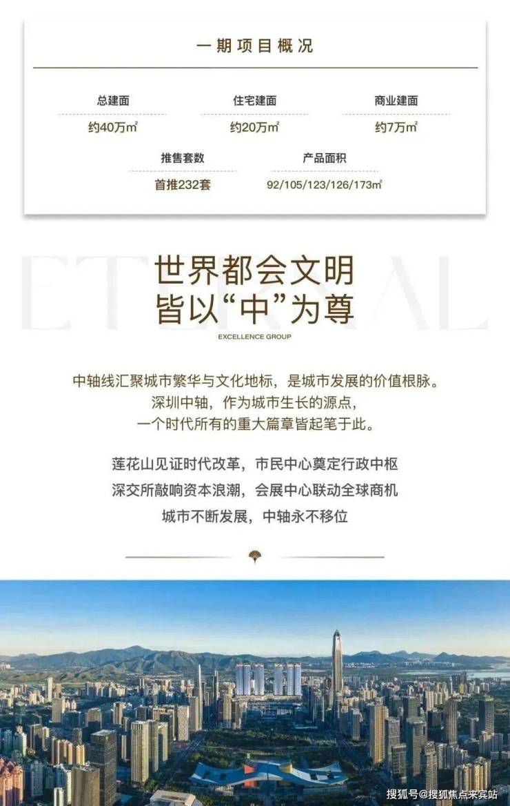 项目位于深圳福田中轴以南, 从项目基地的区位及周边环境出发,充分利用北面稀缺景观资源和地理优势,打造一个文化与生活的载体,兼具优雅烟火气的城央住区。
