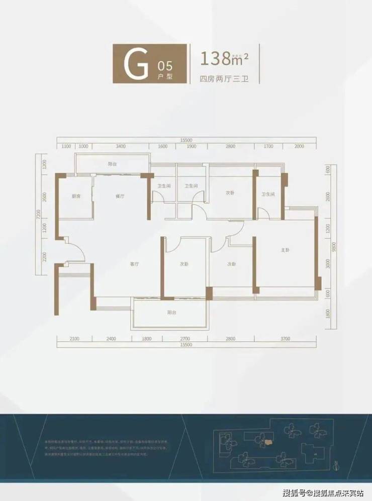 G-05户型为138㎡4房2厅3卫
