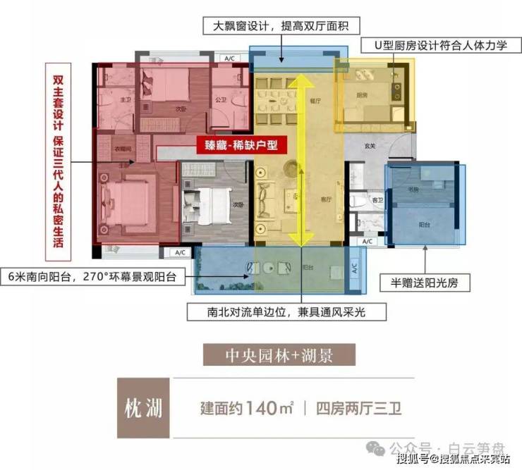 【140㎡四房二厅二卫】四房双主套,6米大阳台,望湖极致景观面!!