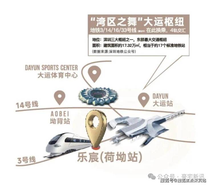 乐宸择址大运新城,以擎动东部的时代坐标之姿,立序湾东智芯。大运新城又定义为大运深港国际科教城,与前海、深圳湾、香蜜湖等区域并称深圳六大城市新客厅,汇聚东部最大综合交通枢纽。区域引进NBA中国赛、当红明星演唱会,深圳国际大学城落户,带动高能级配套激增,造就从容进阶的生活质感。