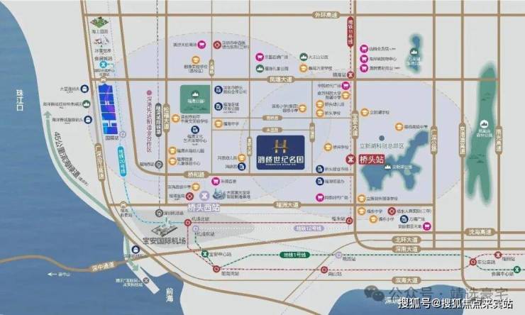六位一体交通畅达:距 11 号线桥头站 700 米、12 号线桥头西站 1300 米,11 号线速联机场 / 宝中 / 前海 / 福田;拥两横四纵高速网,7.4 公里达宝安机场(地铁 3 站);近享在建深茂高铁、福永客运码头(规划机场码头),福海西站 / 机场东站接驳深大城际、穗深城际,湾区全域便捷通达。
