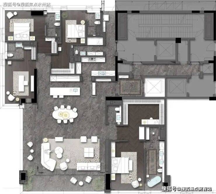 3梯两户约380㎡大平层,专梯入户,镜像对称户型,4套房阔绰空间,专梯入户,私密性极强