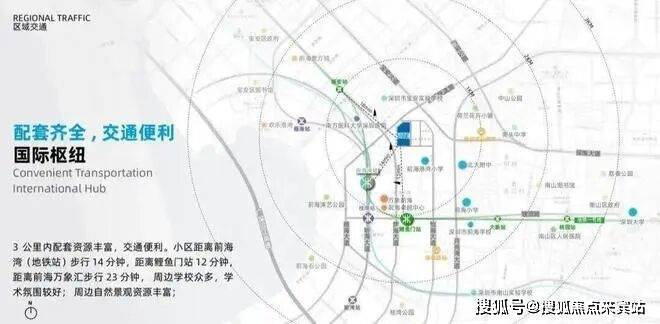 2、从买房必备3件套来分析,招商宴海府距离1/5/11号地铁线交汇前海湾站约500米,地铁通勤距离还算是比较近的,南侧也规划有九年制公办学校,周边1.5公里内的商业极为丰富,且都是高端商业综合体,综合来看评分还是不错的。