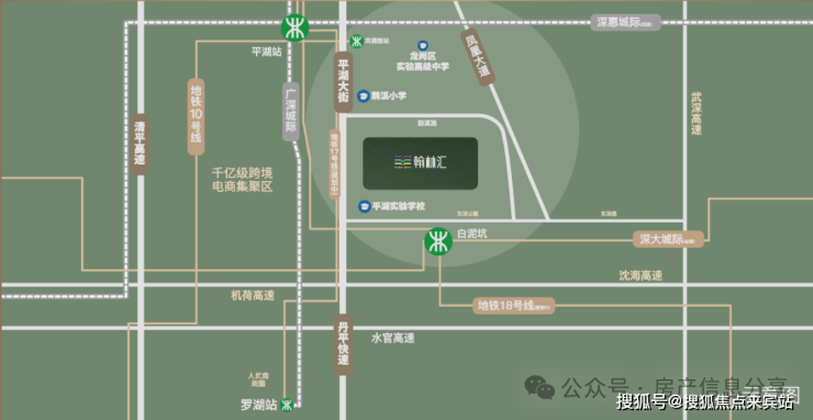 【项目位置】 岗宏翰林汇位于深圳市龙岗区平湖街道平湖大街与湖岭路交汇处,紧邻在建的园岭学校和平湖实验学校。平湖作为深圳17个重点发展区域之一,定位为“金融+科技+总部”特色的战略新兴产业基地,同时也是深圳跨境电商产业的重要聚集地,其跨境电商总量及规模在全市处于领先地位。