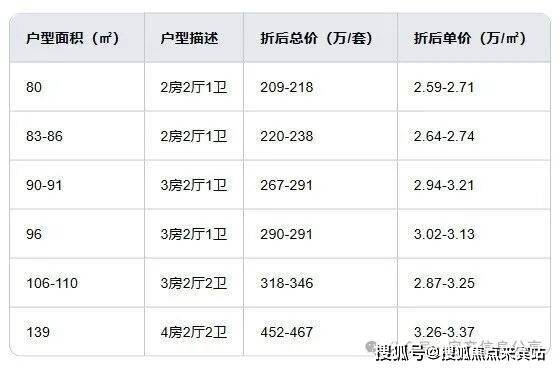 项目共860套房源,户型涵盖79-139㎡的2-4房。备案均价为3.51万/㎡;优惠方面:项目开盘当天享受约85折优惠,另外可获赠3万元购物卡和两年物业管理费。折后均价低至2.98万/㎡,与一期持平。折后单价区间在2.6-3.37万/㎡,总价区间为209-468万/套。