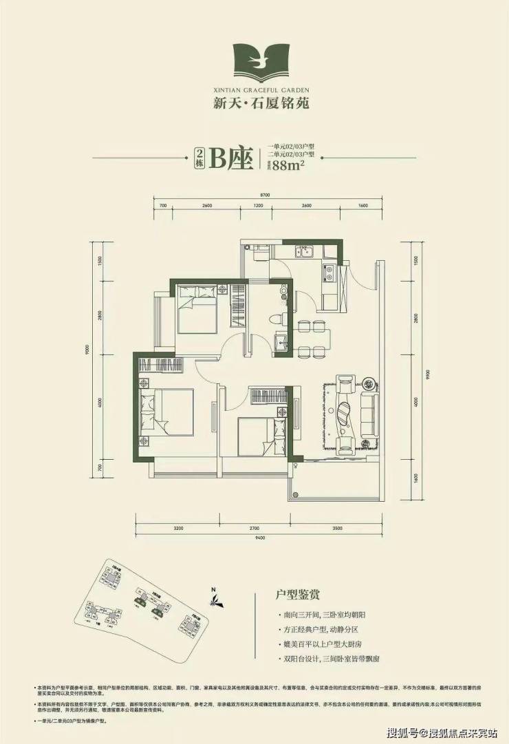 3房2厅1卫88㎡