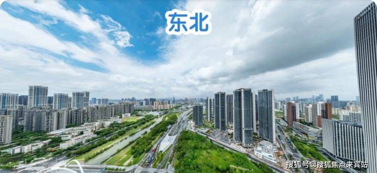 东北:楼下近距是公园绿地和双界河东段景观,远处看新安老城方向,整体远景城市景观为主。