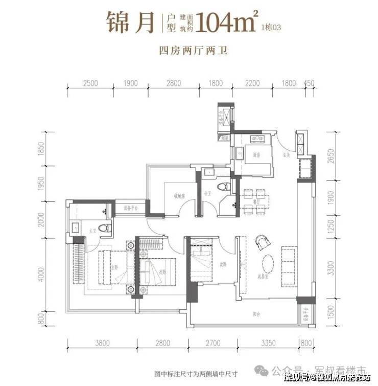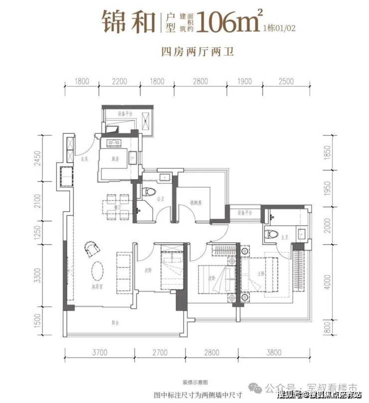 建面约106㎡宽幕人生,以IMAX光幕揽景,以LDKB方厅聚情,更以转角视野与匠心细节,奢享从容生活。• 锦瑟·建面约107㎡4房2厅2卫:双龙抱珠,一线园景,奢阔雅居