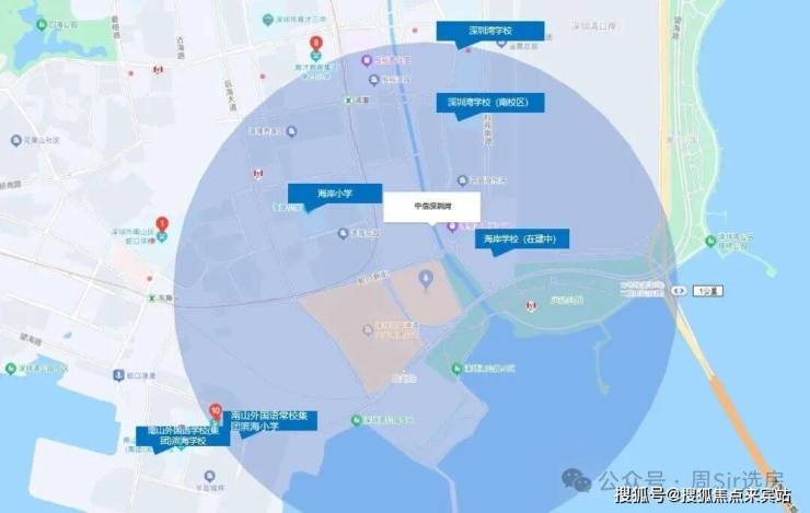 在建海岸学校(54 班制,投资 4 亿),1公里内深圳湾学校、南山外国语学校,解决顶豪家庭教育焦虑