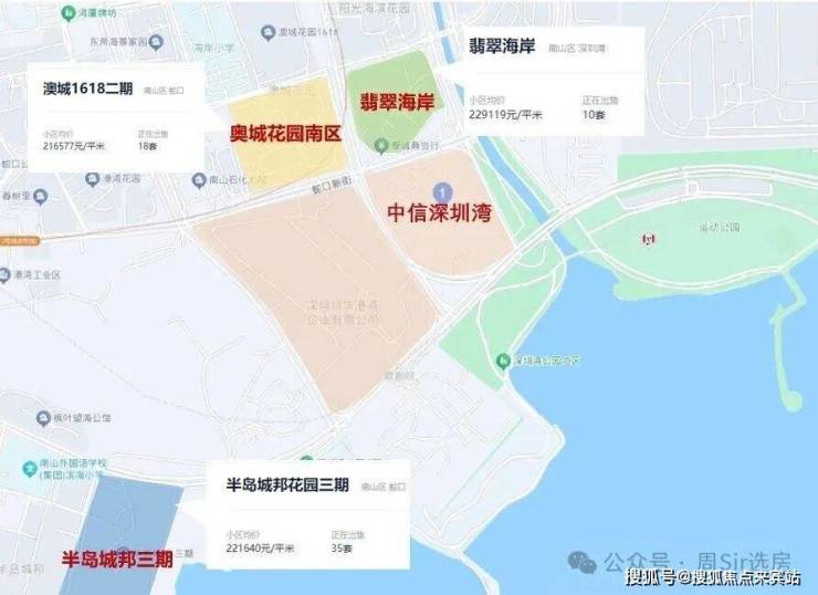 贝壳数据显示,中信深圳湾周边紧邻的翡翠海岸、半岛城邦三期等二手房,挂牌价普遍在 22 万 /㎡上下,巅峰时更是冲到 30 万 +/㎡。