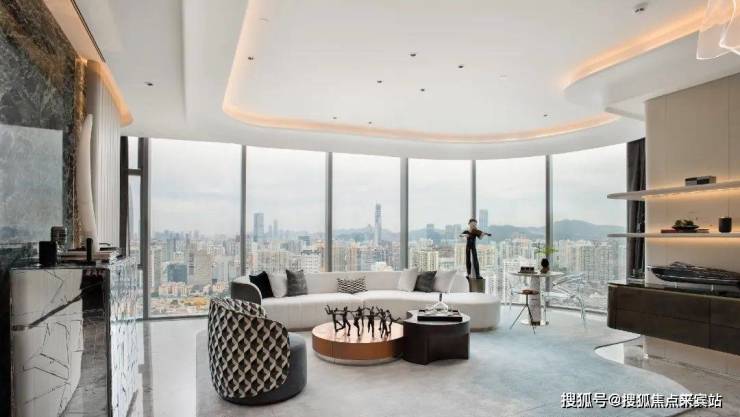 方胜纹双核心筒的设计使得整栋建筑更加高效和私密,并实现了双专梯电梯入户,为塔尖人群高效的工作和私密的生活而服务。转角处曲线设计,拓宽了整个建筑界面,使得建筑拥有270°转角无柱开放式观景视野。是塔尖人群拥揽深港的极佳观景台,足以盛放您帷幄城市的雄心。