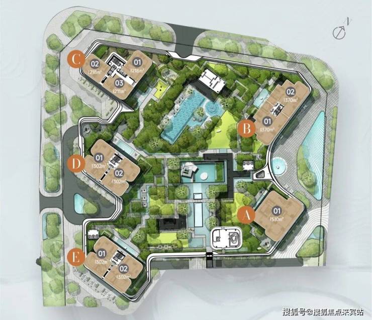 分布在B栋,5梯2户,层高3.6米,独门独户。主朝向东偏南,通透设计,总价预计7000万+。