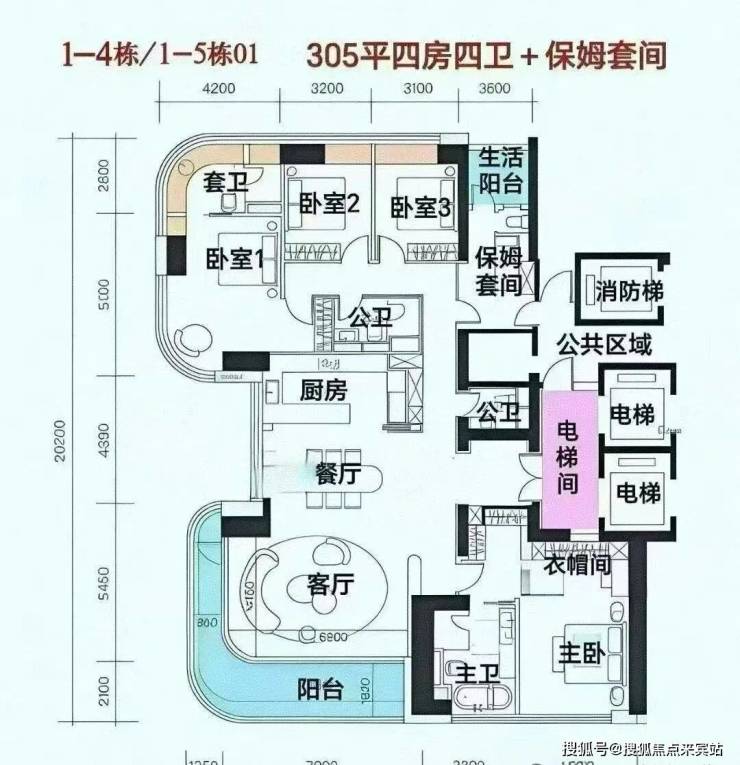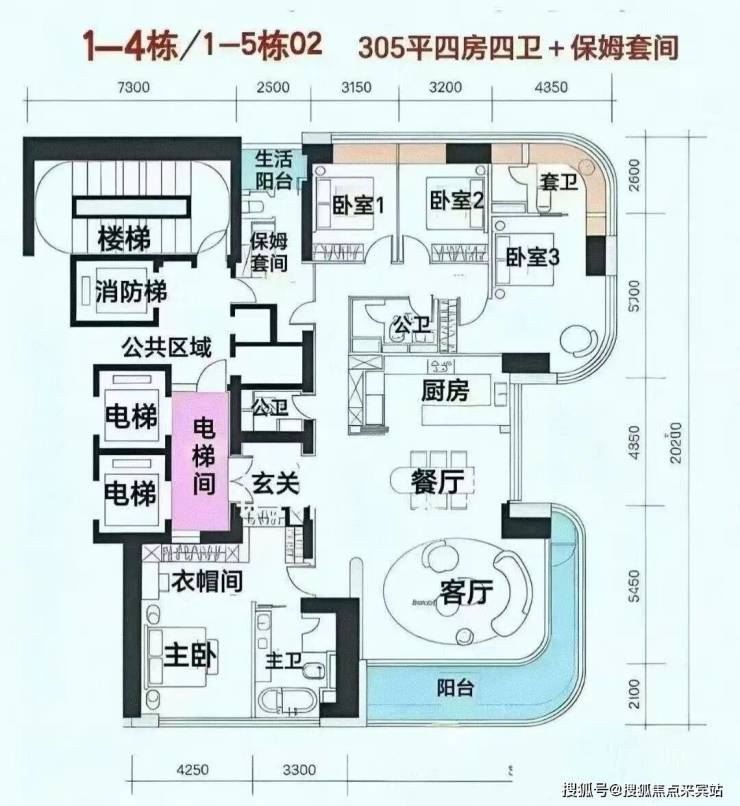 首推户型:305㎡四房四卫+家政套间