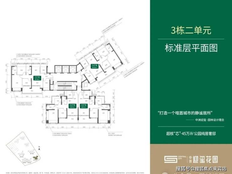 3栋2单元:总层高48层3梯4户,01.04户型115平,02.03户型96平