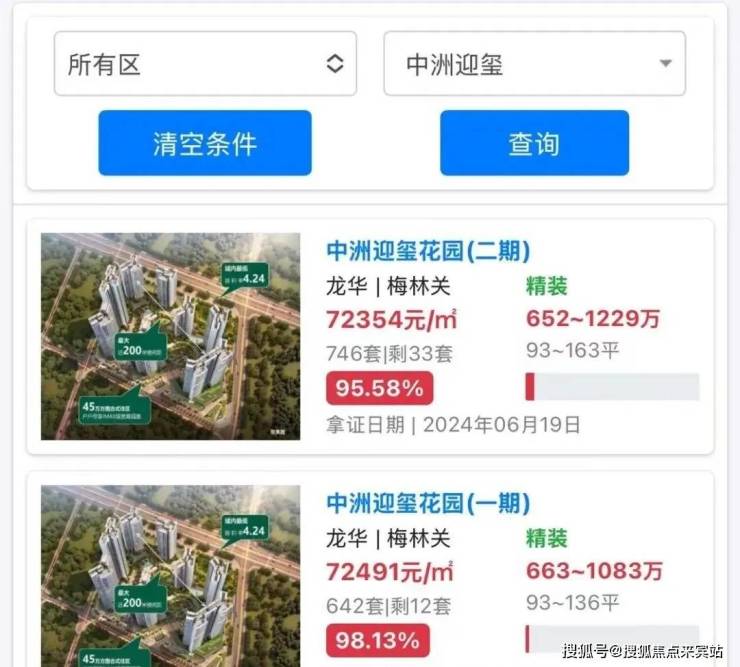 2023年12月一期正式开盘改名“中洲迎玺花园”,最低单价降到5.83万/㎡的起步(同年3月超核xx中心(一期)开盘,毛坯备案均价约7.24万元/㎡,马路对面龙誉花园二期获批预售,备案均价约为7.05万元/㎡)