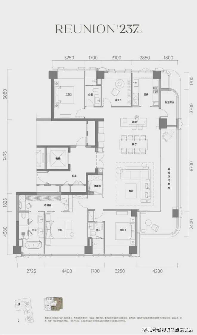 此次首开的是1栋小高层住宅,仅推出约42套建面约197-237㎡ 的四房大平层。