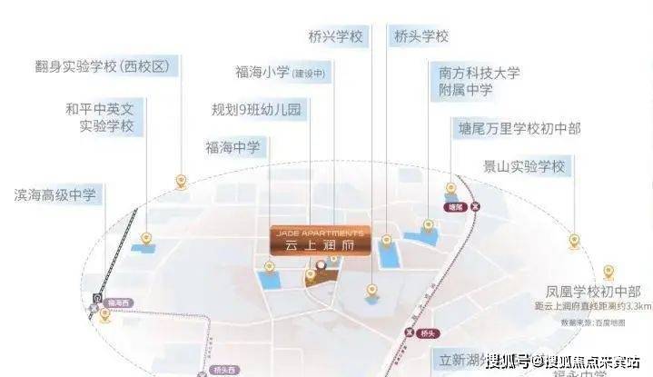 教育资源方面,云上润府周边配备了完善的教育配套,项目自带有1所9班制幼儿园,项目周边2公里范围内还分布有10余所学校,包括九年一贯制桥头学校、福海小学、福海中学、南方科技大学附属中学等。根据宝安区教育局2024年的最新学区划分,小学学区划分在桥头学校小学部、塘尾万里学校小学部、滨海小学(集团)福桥小学、立新湖学校小学部;初中学区划分在桥头学校初中部、塘尾万里学校初中部、立新湖学校初中部。项目内含多所知名幼儿园、小学、中学及高等教育机构,为居民子女提供了全阶段优质教育资源,满足了不同年龄段孩子的教育需求。