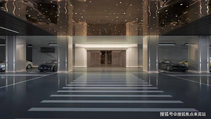 柔和的光亮从车库顶洒下,呈现出一幅炫美纷呈的星空视感,从容移步至奢华车库入户大堂和首层迎宾入户大堂。