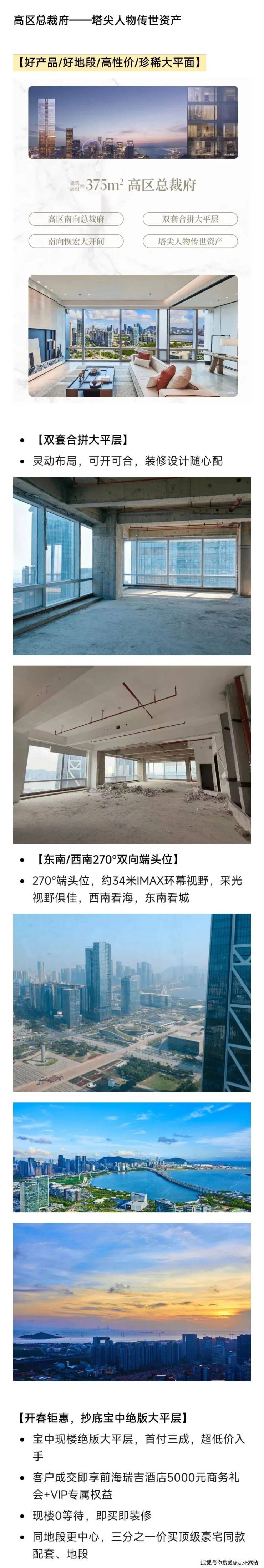 1.前海湾中轴c位:”前海+宝中“双中心辐射,宝安区政府西南侧,独占130米长稀缺头排地段,是对标世界湾区的不可再生资产;