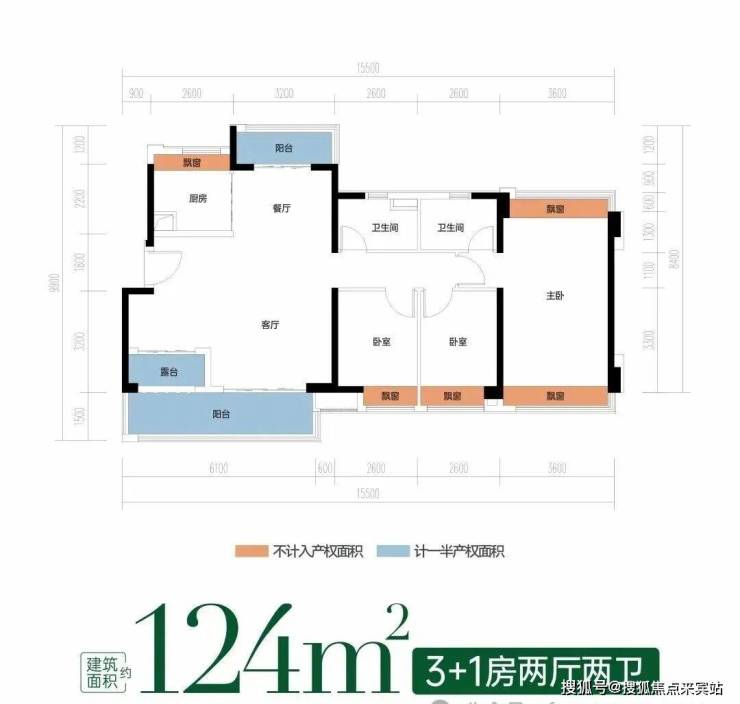 主卧双飘窗+次卧等面宽飘窗,全赠送高拓空间